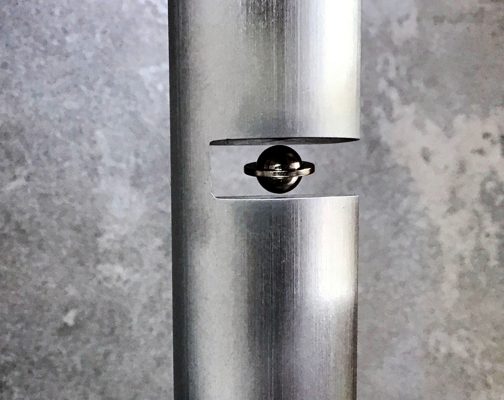 Saturn is a handcrafted kinetic sculpture that floats a 6.5 mm magnetic sphere inside a 9.5 mm ring using a tunnel of diamagnetic bismuth. Gravity and magnetism balance perfectly to create stable, permanent levitation—no electricity required.